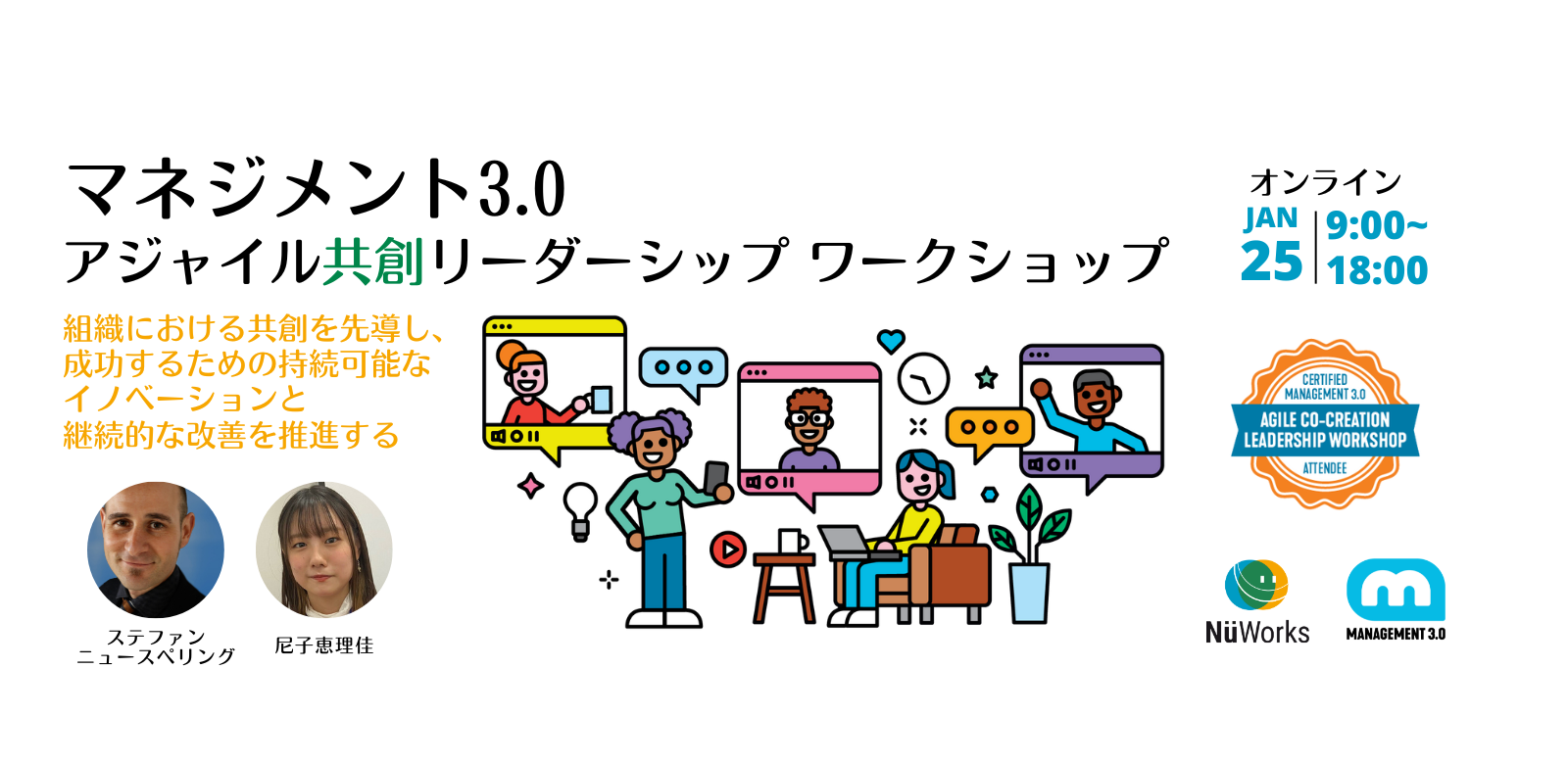 アジャイル共創リーダーシップ ワークショップは Management3.0 の公式ワークショップの 1 つのプログラムです。