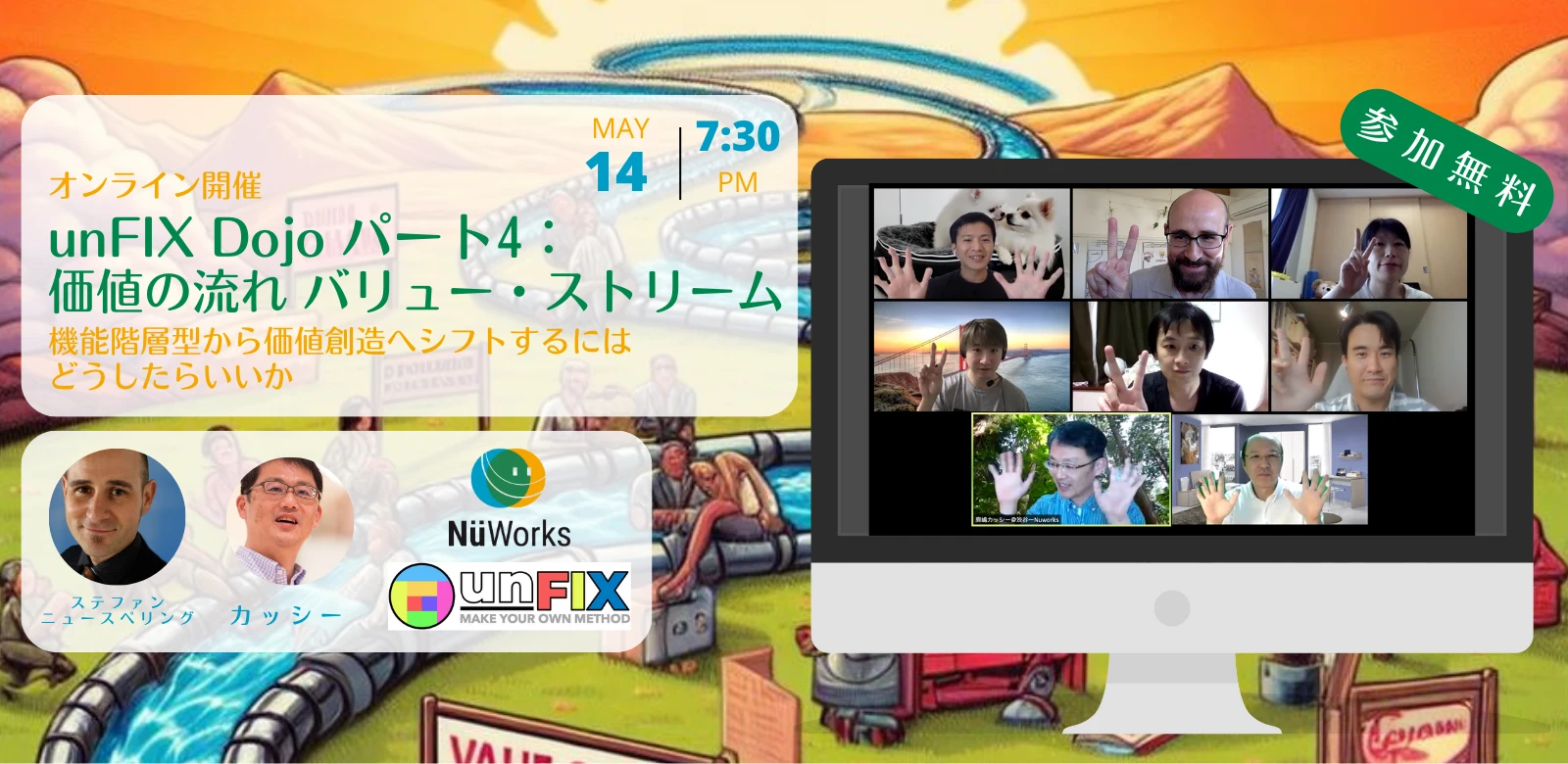 従来の問題解決の方法から個人とチームが流動性と適応性を仕事に取り入れることを奨励しています。UnFIXの原則や、現実のチームや組織の課題に対してどう使えそうか、考え方や方法を実際にこの入門編で体験してみてください。