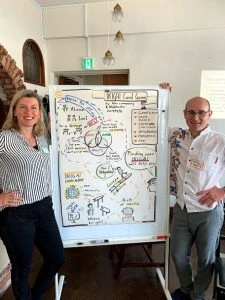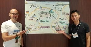 ステファンが3名のプレゼンのグラフィックレコーディングを行いました。