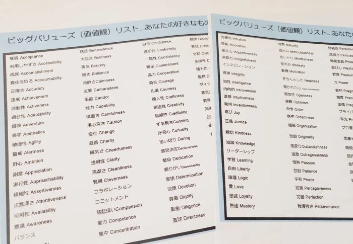 モジュール「価値観と文化」のエクササイズに価値観リスト(ビッグバリューリスト)があります。