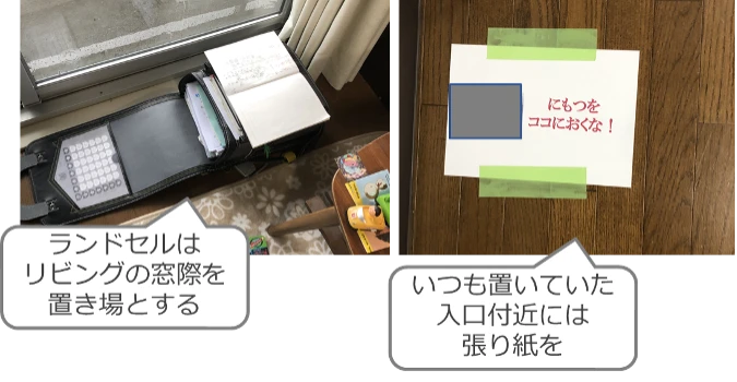 ランドセル問題も「リビングに置きたい」とのことだったので、ルールとして「玄関には置かない」と決め、リビングに置く場所を作りました。