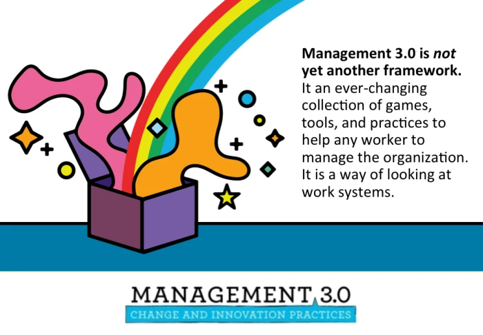 Management 3.0 is a revolution in modern management, currently happening in 80 countries and redefining the definition of leadership with management as a responsibility of the group. It is the future of management, which is all about doing the right thing for your team, involving everyone in improving the system and fostering employee engagement.